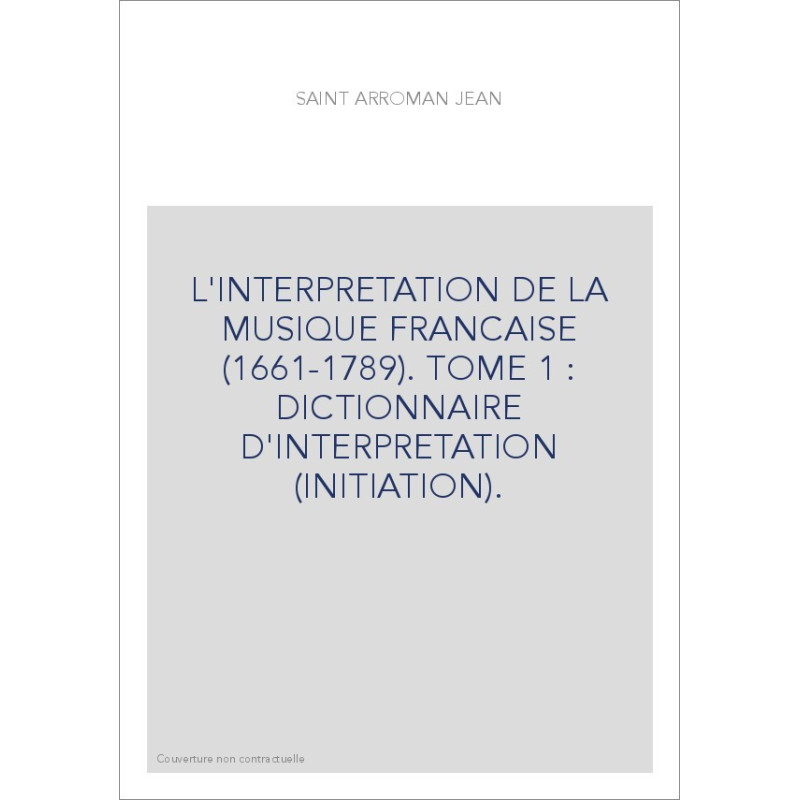 L'INTERPRETATION DE LA MUSIQUE FRANCAISE (1661-1789). TOME 1 : DICTIONNAIRE D'INTERPRETATION (INITIATION).