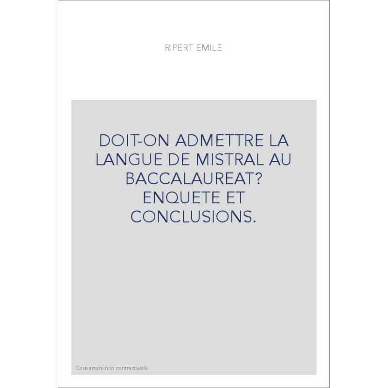 DOIT-ON ADMETTRE LA LANGUE DE MISTRAL AU BACCALAUREAT ? ENQUETE ET CONCLUSIONS. View larger