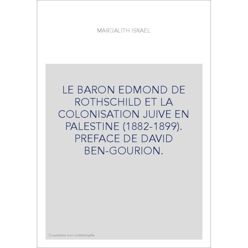 LE BARON EDMOND DE ROTHSCHILD ET LA COLONISATION JUIVE EN PALESTINE (1882-1899). PREFACE DE DAVID BEN-GOURION.
