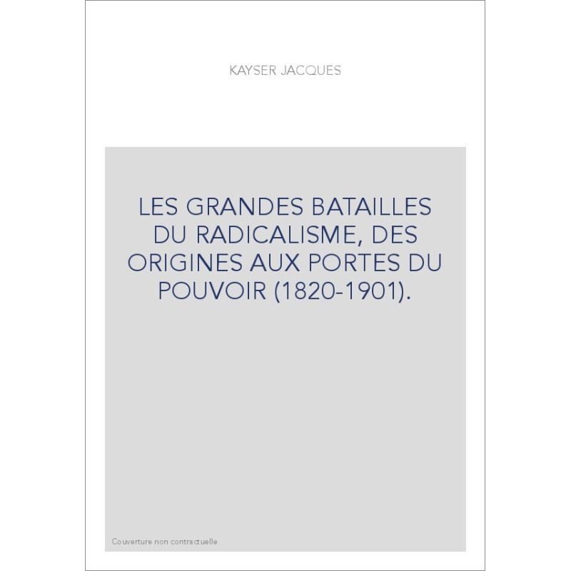 LES GRANDES BATAILLES DU RADICALISME, DES ORIGINES AUX PORTES DU POUVOIR (1820-1901).