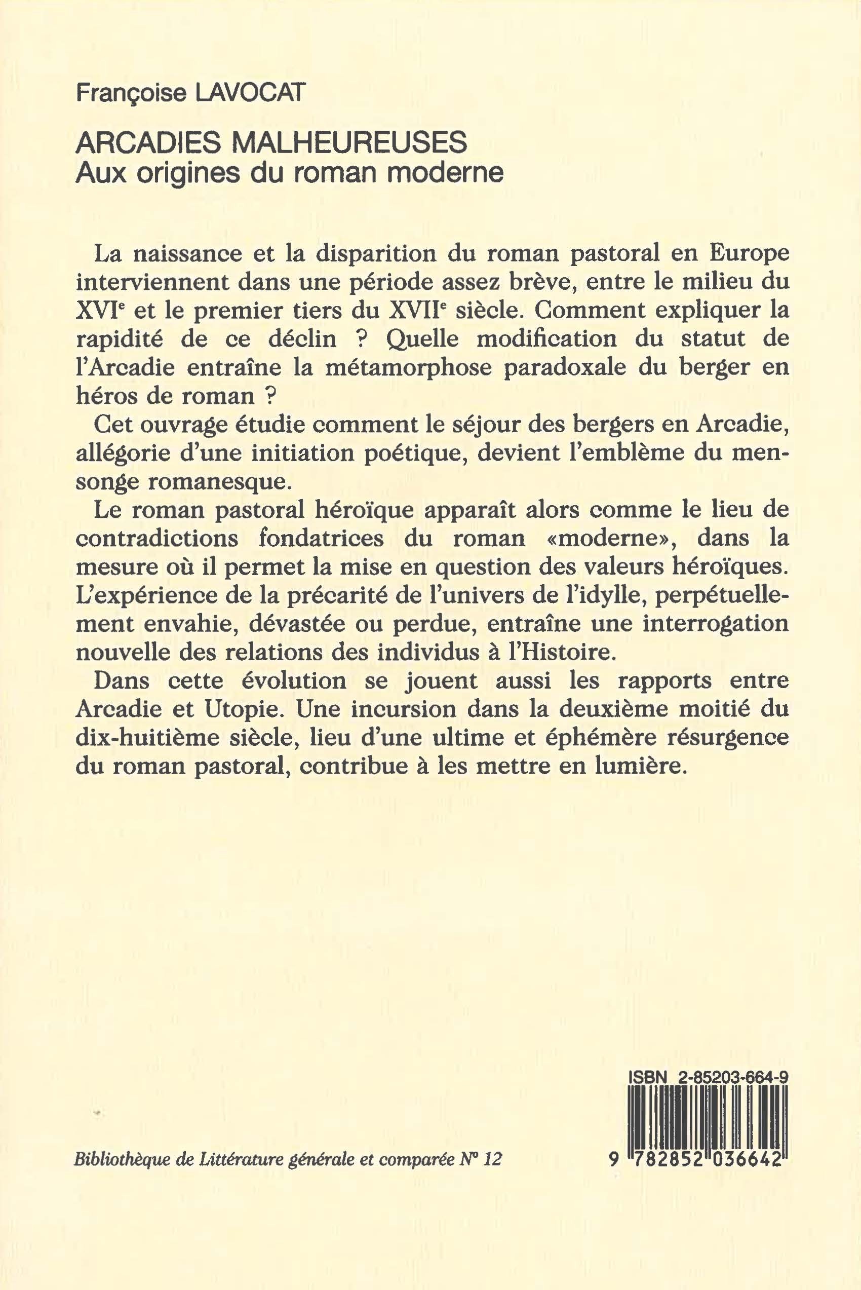La naissance et la disparition du roman pastoral en Europe interviennent dans une période assez brève, entre le milieu du XVIe et le premier tiers du XVIIe siècle. Comment expliquer la rapidité de ce déclin ? Quelle modification du statut de l'Arcadie entraîne la métamorphose paradoxale du berger en héros de roman ?
