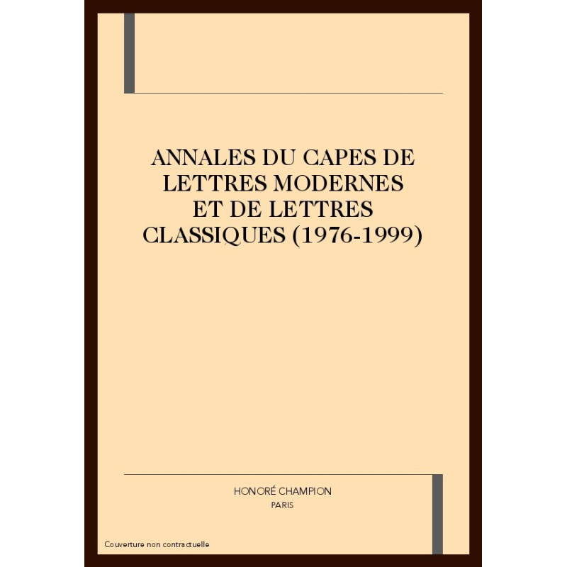 ANNALES DU CAPES DE LETTRES MODERNES ET DE LETTRES CLASSIQUES (1976-1999).