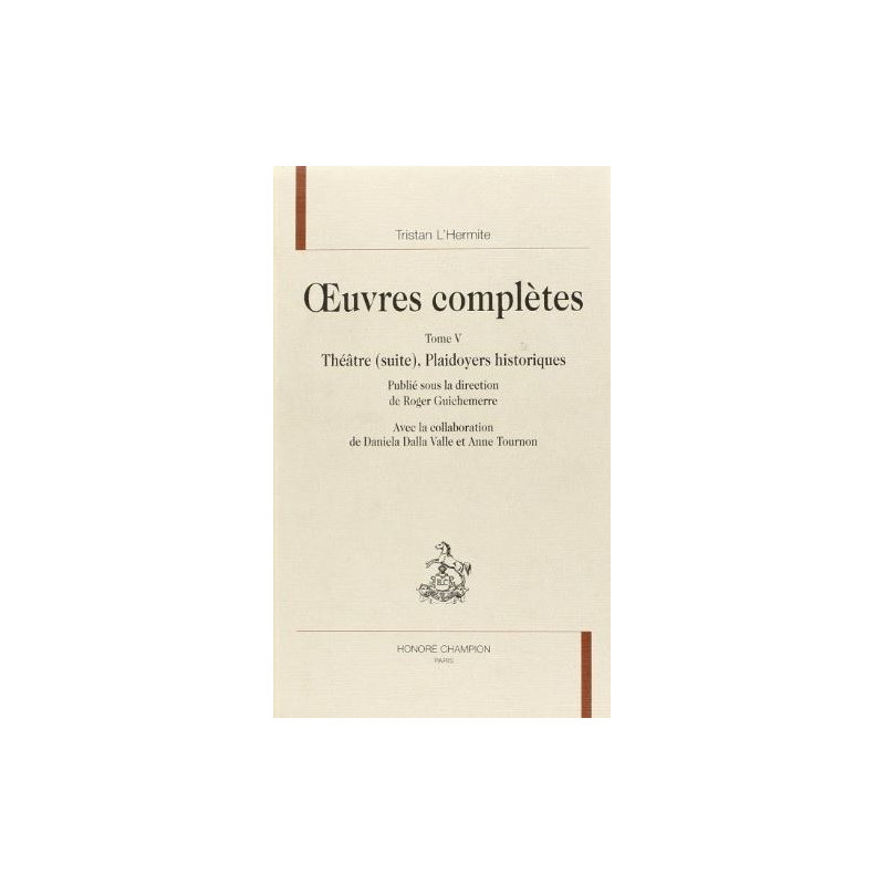 Poète, romancier, Tristan est aussi un dramaturge fécond: après ses cinq tragédies, qui figurent dans le tome IV, le présent volume réunit trois pièces qui témoignent de la variété et de l'originalité de son inspiration. La Folie du Sage, dans une intrigue de tragi-comédie avec roi tyrannique, fausse mort de l'héroïne et dénouement heureux, nous présente un père pathétique, méditant sur la vanité de la philosophie stoïcienne. Une comédie pastorale, Amarillis, reprise d'une pièce de Rotrou, pimente les quiproquos amoureux créés par un travesti de scènes érotiques avec trois satyres luxurieux et couards. Quant au Parasite, il enrichit un scénario à l'italienne - un galant se fait passer pour le frère de sa belle, échappé aux Barbaresques - du personnage truculent d'un parasite, véritable héros de la comédie qu'il agrémente de sa verve. Enfin les Plaidoyers historiques, dans lesquels, sur des affaires criminelles, les parties opposées s'affrontent en argumentations vigoureuses, nous font découvrir un univers familial tragique, révélateur de la sensibilité de Tristan. Cette édition est due à Roger Guichemerre, professeur émérite à la Sorbonne, à Daniela Dalla Valle, professeur à l'Université de Turin, tous deux auteurs de nombreux ouvrages sur le théâtre au XVIIe siècle, ainsi qu'à Anne Tournon, professeur agrégée à l'I.U.T. B de Grenoble.