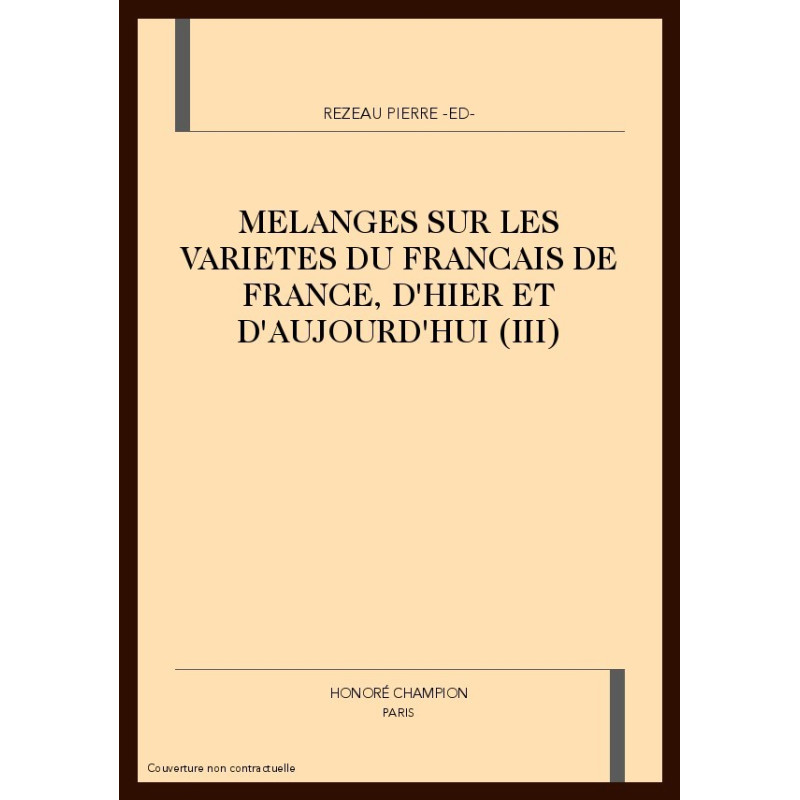 MELANGES SUR LES VARIETES DU FRANCAIS DE FRANCE, D'HIER ET D'AUJOURD'HUI (III)