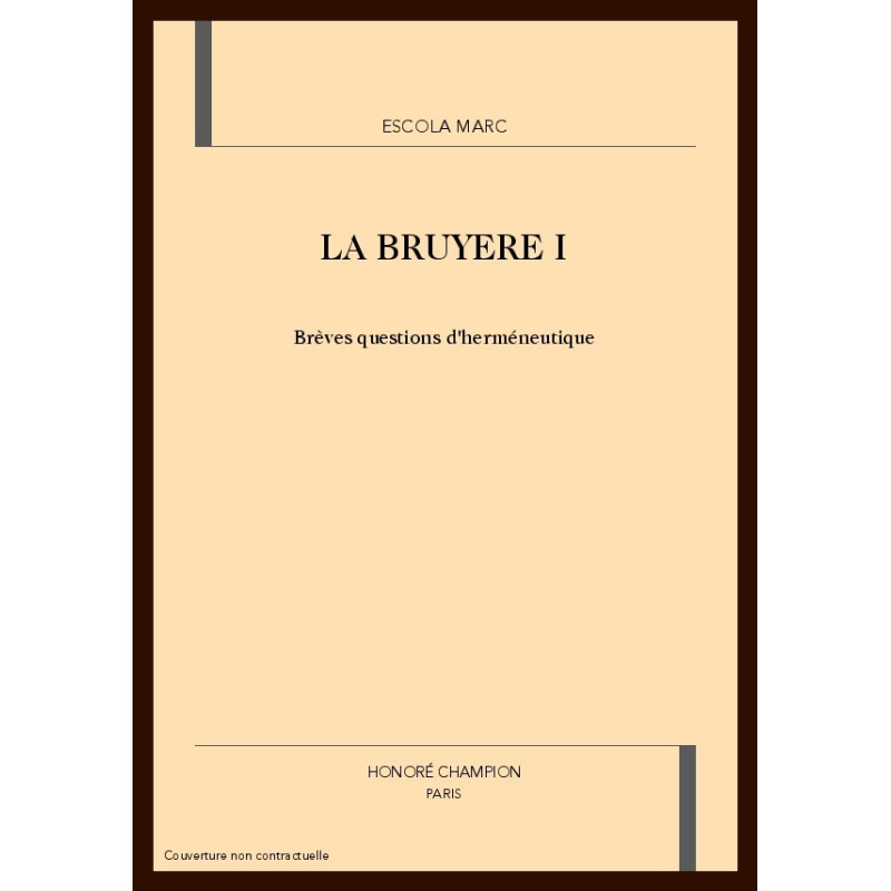 LA BRUYERE. TOME 1 : BREVES QUESTIONS D'HERMENEUTIQUE.