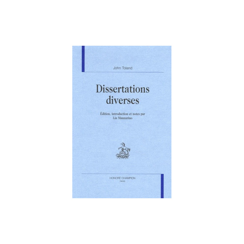Sous le titre de Dissertations diverses de Monsieur Tolandus avaient été réunis à Vienne, pour la bibliothèque privée du baron de Hohendorf, plusieurs manuscrits français de longueur différente et traitant de thèmes variés. Toutes les transcriptions sont vraisemblablement de la même main, celle de John Toland lui-même. On trouve dans ce recueil les "dissertations" suivantes : Christianisme judaïque et mahométan, Lettres à Serena : Lettre première : L'origine et la force des préjugés. Lettre seconde : L'histoire de l'immortalité de l'âme ; Projet d'une dissertation sur le colomne de nuée et de feu des Israélites ; Amyntor canonicus ; Deux problèmes historiques, théologiques et politiques.