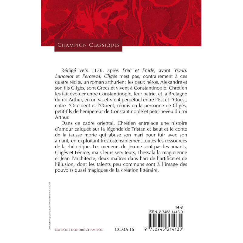 Dans ce cadre oriental, Chrétien entrelace une histoire d’amour calquée sur la légende de Tristan et Iseut et le conte de la fausse morte qui abuse son mari pour fuir avec son amant, en exploitant très ostensiblement toutes les ressources de la rhétorique. Les meneurs du jeu ne sont pas les amants, Cligès et Fénice, mais leurs serviteurs, Thessala la magicienne et Jean l’architecte, deux maîtres dans l’art de l’artifice et de l’illusion, dont les talents peu communs sont à l’image des pouvoirs quasi magiques de la création littéraire.