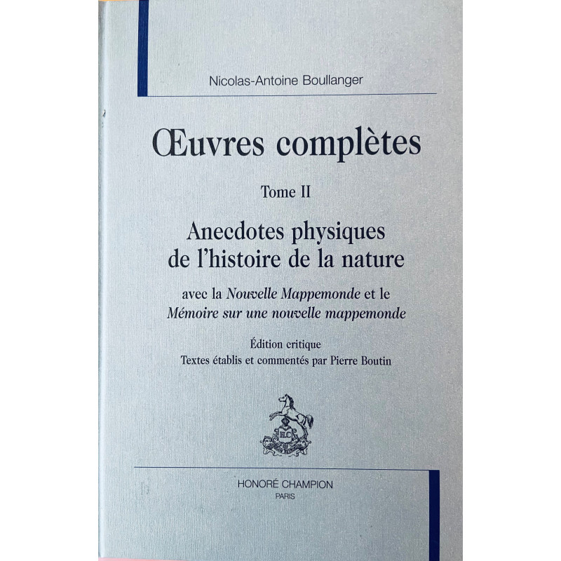 Manuscrit resté jusque-là inédit, les Anecdotes physiques de l`histoire de la nature sont une clef pour l`ensemble de l`œuvre philosophique et politique de Boullanger et l`on y découvre des sources méconnues de la pensée de Diderot, d`Herder et de Benjamin Constant. Aux yeux de l`auteur, les catastrophes naturelles ont été les "vrais législateurs des sociétés renouvelées", et c`est de la peur des hommes qu`ont pu naître et la théocratie et le despotisme. Pionnier en matière de géomorphologie, Boullanger entend faire du concept de "fait sensible" et de sa "science nouvelle", les ressorts d`une "philosophie politique" ; c`est ainsi que, quelques mois avant sa mort, il présente à Helvétius, la visée de ses recherches.