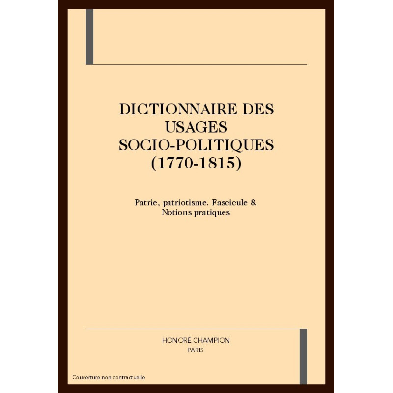 DICTIONNAIRE DES USAGES SOCIO POLITIQUE (1770-1815) FASCICULE 8. NOTIONS PRATIQUES