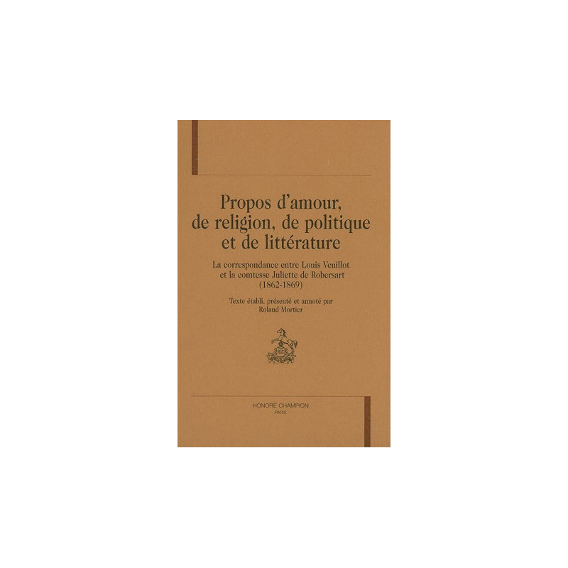 LA CORRESPONDANCE ENTRE LOUIS VEUILLOT ET LA COMTESSE JULIETTE DE ROBERSART. PROPOS D'AMOUR, DE RELIGION,
