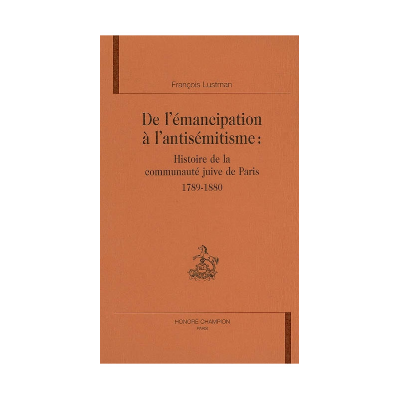 »Champion»DE L'EMANCIPATION A L'ANTISEMITISME: HISTOIRE DE LA COMMUNAUTE JUIVE DE PARIS. 1789-1880