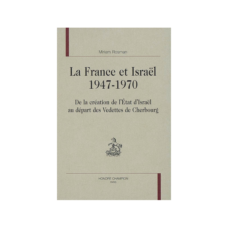 Cet ouvrage se propose d'étudier les relations entre la France et Israël entre 1947 et 1970. Sa première partie porte sur l'établissement des premiers liens, de la naissance d'Israël à la mise en place de relations entre les deux pays. Sa seconde partie s'attarde sur les liens de plus en plus serrés entre les deux États, la crise de Suez, les changements politiques en France, l'influence du retour de De Gaulle au pouvoir et les visites de Ben Gourion à Paris. Sa troisième concerne les années soixante, après l'Indépendance de l'Algérie, la guerre des Six jours et l'embargo français. Pour rédiger cet ouvrage consacré aux premières années des relations franco-israéliennes, l'auteur a bénéficié de l'ouverture récente de nombreux fonds d'archives importants, encore inexploités, et a exhumé nombre de documents inédits. La confrontation des archives des deux pays constitue l'un des principaux atouts de ce travail. De nombreux témoignages de personnalités qui ont joué un rôle primordial dans ces relations et qui ont accepté, pour certaines de sortir de leur réserve, pour d'autres de mettre au grand jour des éléments jugés trop sensibles jusqu'alors ainsi que d'ouvrir leurs archives privées, complètent ce nouvel éclairage. L'auteur, Miriam Rosman, Israélienne, issue d'une famille francophone, est titulaire d'un Doctorat en Histoire de l'Université Paris I-Panthéon-Sorbonne. Ses travaux précédents étaient consacrés à l'analyse du regard posé par la presse française sur la guerre de Suez et sur la guerre des Six jours.