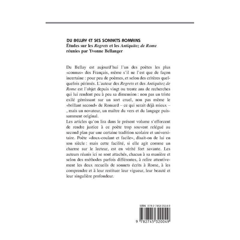 Les articles qu’on lira dans le présent volume s’efforcent de rendre justice à ce poète trop souvent relégué au second plan par une certaine tradition scolaire et universitaire. Poète « doux-coulant et facile », disait-on de lui en son siècle : mais cette facilité, si elle agit comme un charme sur le lecteur, est en vérité fort savante. Les auteurs réunis ici se sont attachés, chacun à sa manière et selon des méthodes parfois différentes, à relire attentivement les deux recueils de sonnets écrits à Rome, à les comprendre et à leur restituer leur vigueur, leur beauté et leur singulière profondeur.
