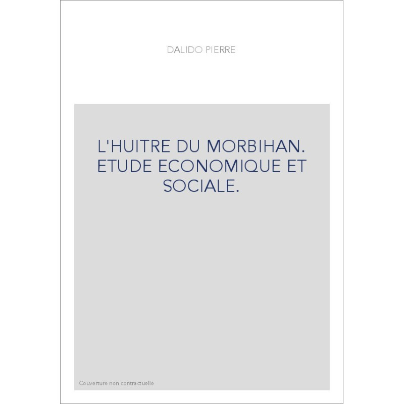 L'HUITRE DU MORBIHAN. ETUDE ECONOMIQUE ET SOCIALE.