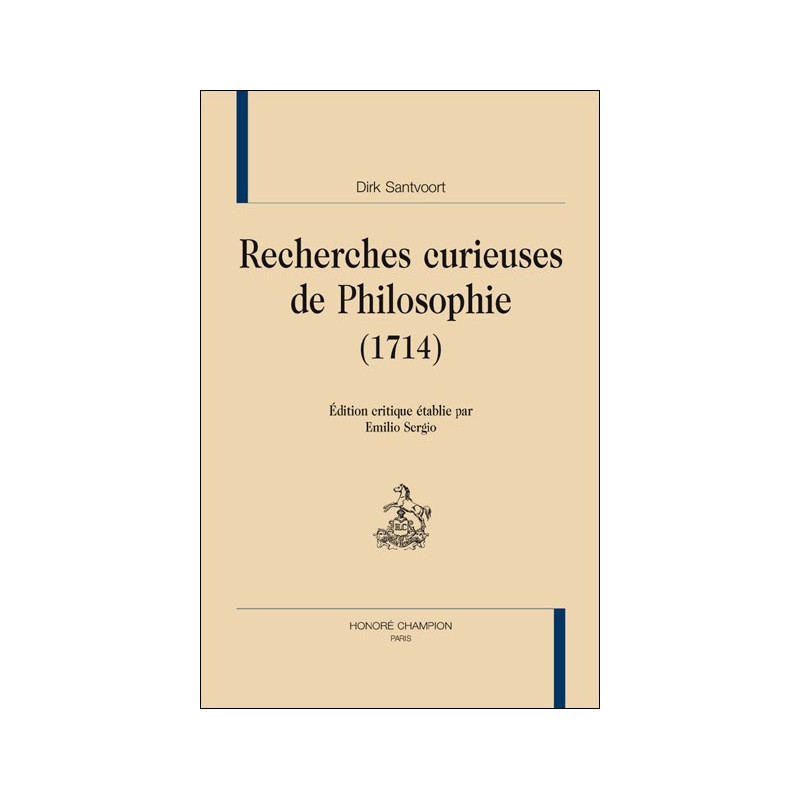 Nous présentons ici une édition critique du manuscrit philosophique clandestin intitulé Recherches curieuses de philosophie, que nous avons pu identifier comme étant la traduction française par le comte de Boulainvilliers d'un ouvrage latin publié en 1704 et en 1713, lui-même traduit d'un ouvrage néerlandais dû à Dirk Santvoort (1653-1712), ferronnier d'Amsterdam et d'Utrecht, autodidacte anticartésien, qui s'était mis en tête d'expliciter un système sur " la cause du mouvement et les principes des corps solides ". Influencé par Pieter Rabus et par Willem Sewel, tous deux rédacteurs en chef du périodique Boekzaal van Europe (La Librairie de l'Europe), l'auteur réagit aussi contre la Telluris theoria sacra de Thomas Burnet, qui avait été traduite en néerlandais par Ameldonk Blok (ou Amleldonck Bloek), ami de Tschirnhaus, le disciple de Spinoza. Ce manuscrit obscur, qui circulait sans nom - mais dont la version latine avait obtenu les honneurs d'un compte rendu dans le Journal des savants - se révèle ainsi être un formidable témoignage sur le développement de la libre pensée aux Pays-Bas au début du dix-huitième siècle. Emilio Sergio est chercheur en histoire de la philosophie à l'Université de Calabre. Il a achevé son doctorat en Philosophie et Histoire des Idées en 2001 à l'Université de Catania, sous la direction de Corrado Dollo et Ferdinando Abbri. Ses premières études sur la littérature philosophique clandestine ont été conduites dans le cadre du Projet de Recherche Nationale (PRIN 2003), dirigé, en Calabre, par Francesca Bonicalzi. Ses intérêts actuels portent sur les rapports entre la littérature philosophique clandestine et les sciences, et sur la fortune des idées scientifiques et matérialistes à l'âge classique.