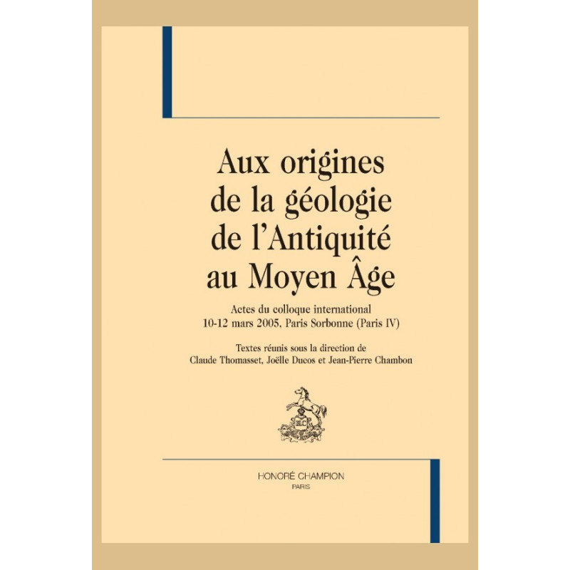 AUX ORIGINES DE LA GEOLOGIE DE L'ANTIQUITE AU MOYEN AGE