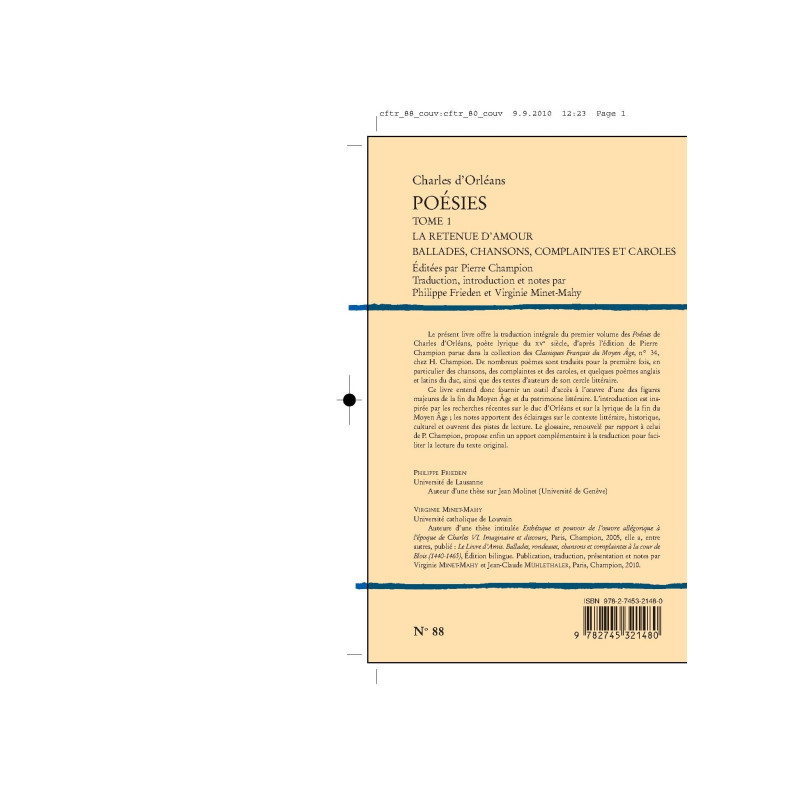 Editées par Pierre Champion. Traduction, introduction et notes par Philippe Frieden et Virginie Minet-Mahy