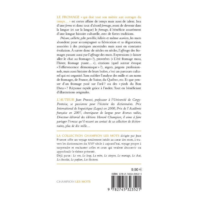 This study offers a profound analysis of the word cheese by focusing on its expressions, proverbs or quotations. It also offers an analysis of more than thousand Swiss, French or Quebec cheese names.