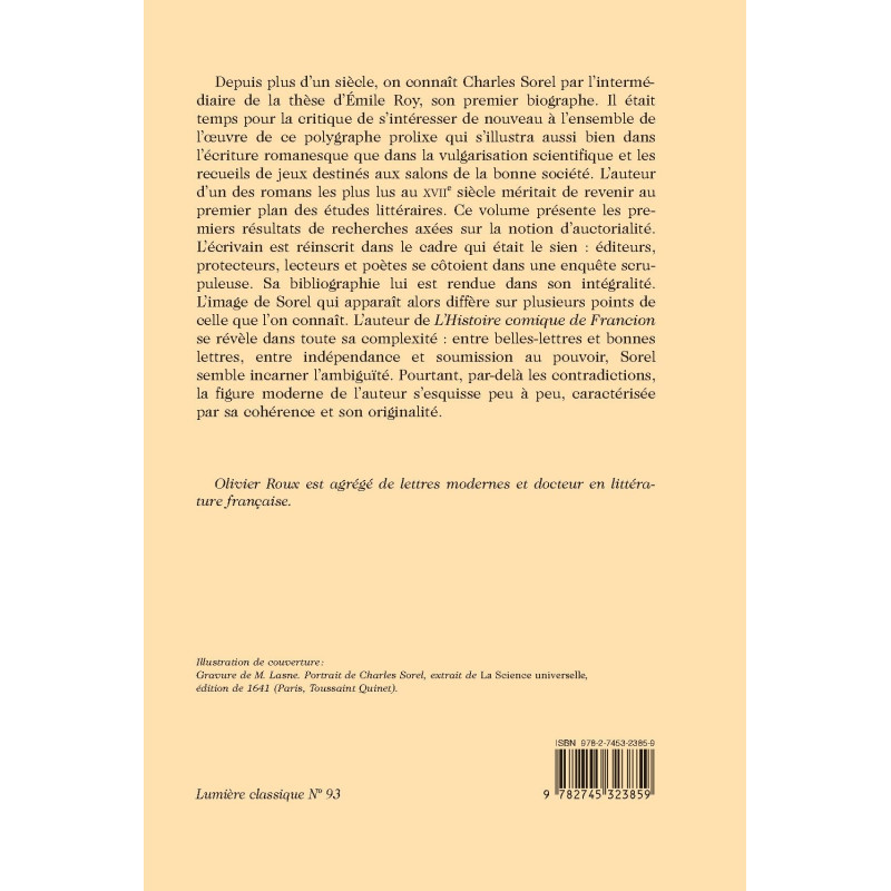 In this second volume of his study on Charles Sorel, Olivier Roux analyzes the 17th-century polygraph’s manifold writings. He points out the stylistic consistency (and striking modernity) of his writing principles throughout his genre-spanning oeuvre, from his novels down to his scientific treatises.
