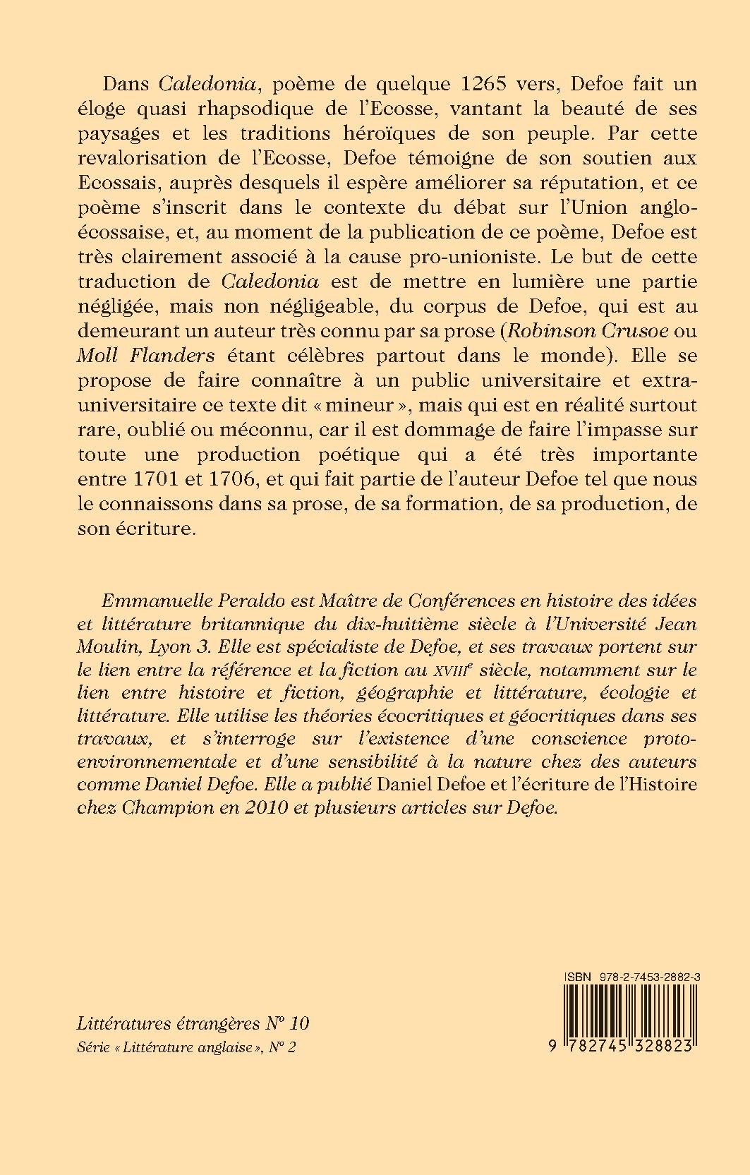 This annotated bilingual edition of Defoe’s 1,265-line ode to Scotland, Caledonia, stems from the conviction that he has been unduly spurned by anthologies of poetry. Besides praising the country’s landscape and its people, the poem hints between the lines at Defoe’s support for union with England.