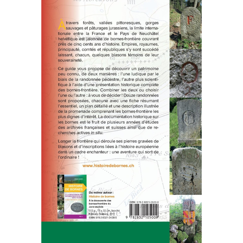 À travers forêts, vallées pittoresques, gorges sauvages et pâturages jurassiens, la limite internationale entre la France et le Pays de Neuchâtel helvétique est jalonné de bornes-frontière couvrant près de cinq cents ans d’histoire. Empires, royaumes, principauté, comtés et républiques se sont succédé sur la limite laissant, chacun, quelques blasons témoins de leurs souverainetés.