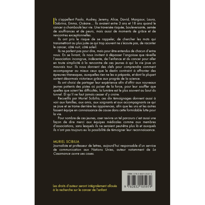 Ils s’appellent Paolo, Audrey, Jeremy, Alice, David, Margaux, Laura, Sabrina, Emma, Océane… Ils avaient entre 3 ans et 18 ans quand le cancer a chamboulé leur vie. Une traversée risquée, bouleversante, semée de souffrances et de peurs, mais aussi de moments de grâce et de rencontres exceptionnelles.