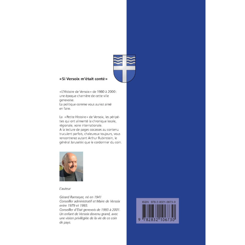 L’auteur : Gérard Ramseyer, né en 1941, Conseiller administratif et Maire de Versoix entre 1979 et 1993 Conseiller d’Etat genevois de 1993 à 2001. Un enfant de Versoix devenu grand, avec une vision privilégiée de la vie de ce coin de pays.