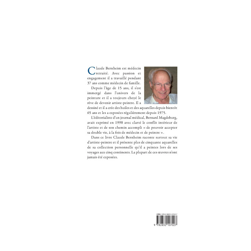 Dans ce livre Claude Bernheim raconte surtout sa vie d’artiste-peintre et il présente plus de cinquante aquarelles de sa collection personnelle qu’il a peintes lors de ses voyages aux cinq continents. La plupart de ces œuvres n’ont jamais été exposées.