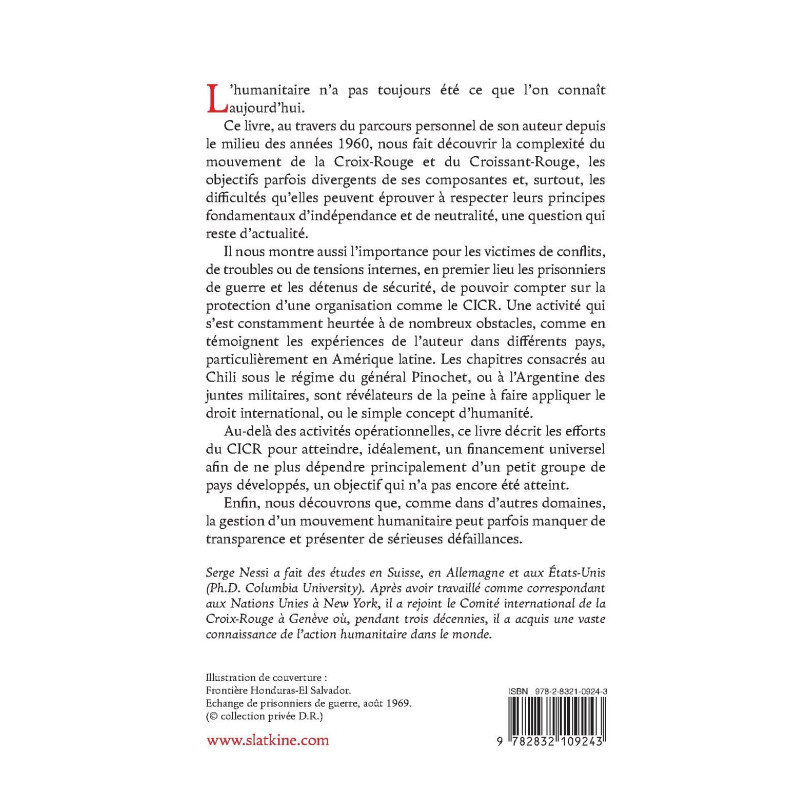Ce livre, au travers du parcours personnel de son auteur depuis le milieu des années 1960, nous fait découvrir la complexité du mouvement de la Croix-Rouge et du Croissant-Rouge, les objectifs parfois divergents de ses composantes et, surtout, les difficultés qu’elles peuvent éprouver à respecter leurs principes fondamentaux d’indépendance et de neutralité, une question qui reste d’actualité.