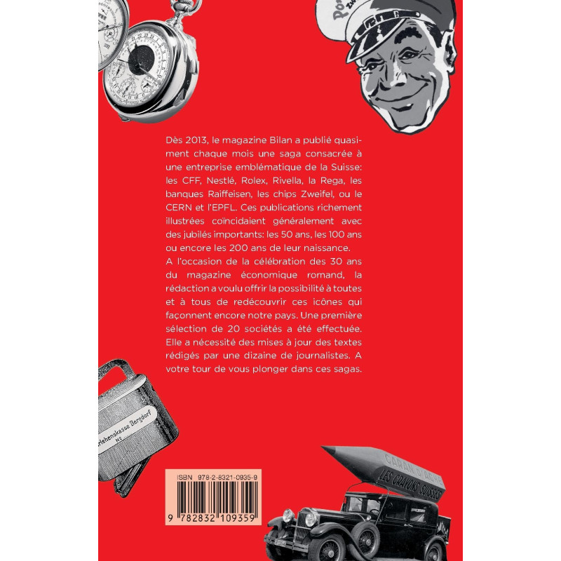 Dès 2013, le magazine Bilan a publié quasiment chaque mois une saga consacrée à une entreprise emblématique de la Suisse: les CFF, Nestlé, Rolex, Rivella, la Rega, les banques Raiffeisen, les chips Zweifel, ou le CERN et l’EPFL. Ces publications richement illustrées coïncidaient généralement avec des jubilés importants: les 50 ans, les 100 ans ou encore les 200 ans de leur naissance.