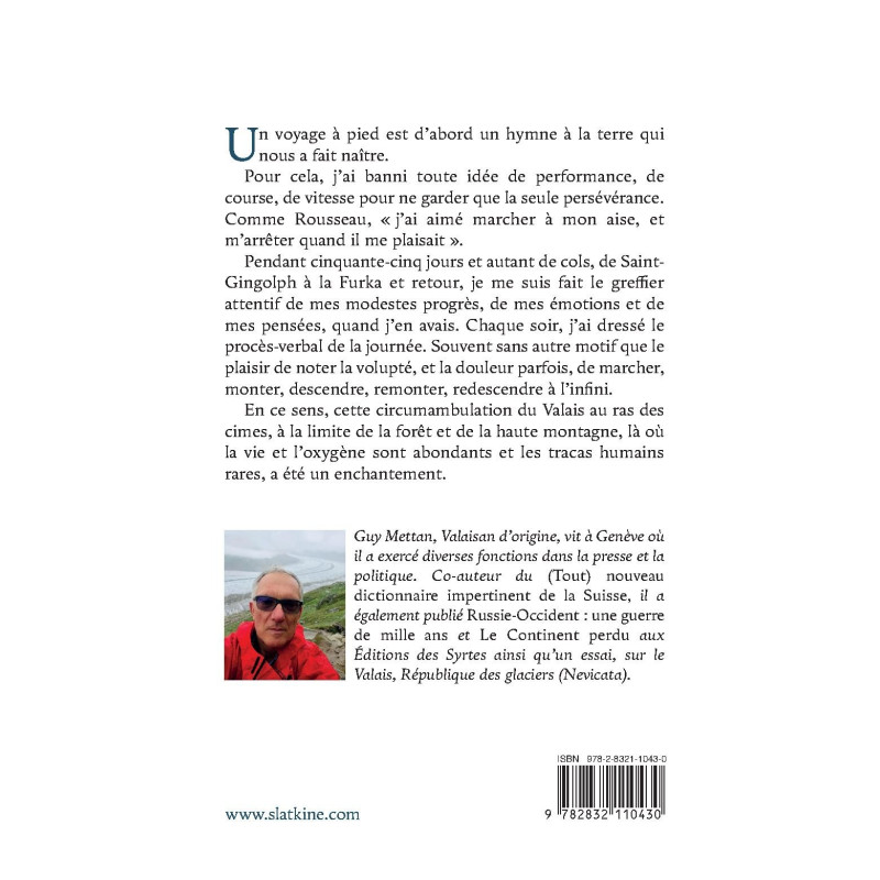 Gingolph à la Furka et retour, je me suis fait le greffier attentif de mes modestes progrès, de mes émotions et de mes pensées, quand j’en avais. Chaque soir, j’ai dressé le procès-verbal de la journée. Souvent sans autre motif que le plaisir de noter la volupté, et la douleur parfois, de marcher, monter, descendre, remonter, redescendre à l’infini.