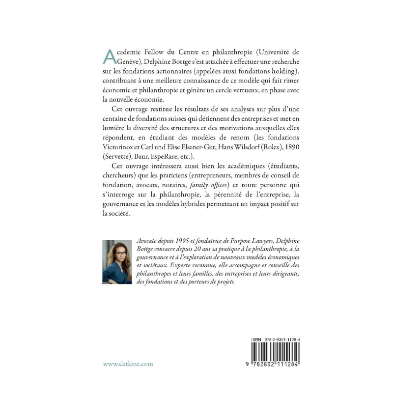 Cet ouvrage intéressera aussi bien les académiques (étudiants, chercheurs) que les praticiens (entrepreneurs, membres de conseil de fondation, avocats, notaires, family offices) et toute personne qui s’interroge sur la philanthropie, la pérennité de l’entreprise, la gouvernance et les modèles hybrides permettant un impact positif sur la société.