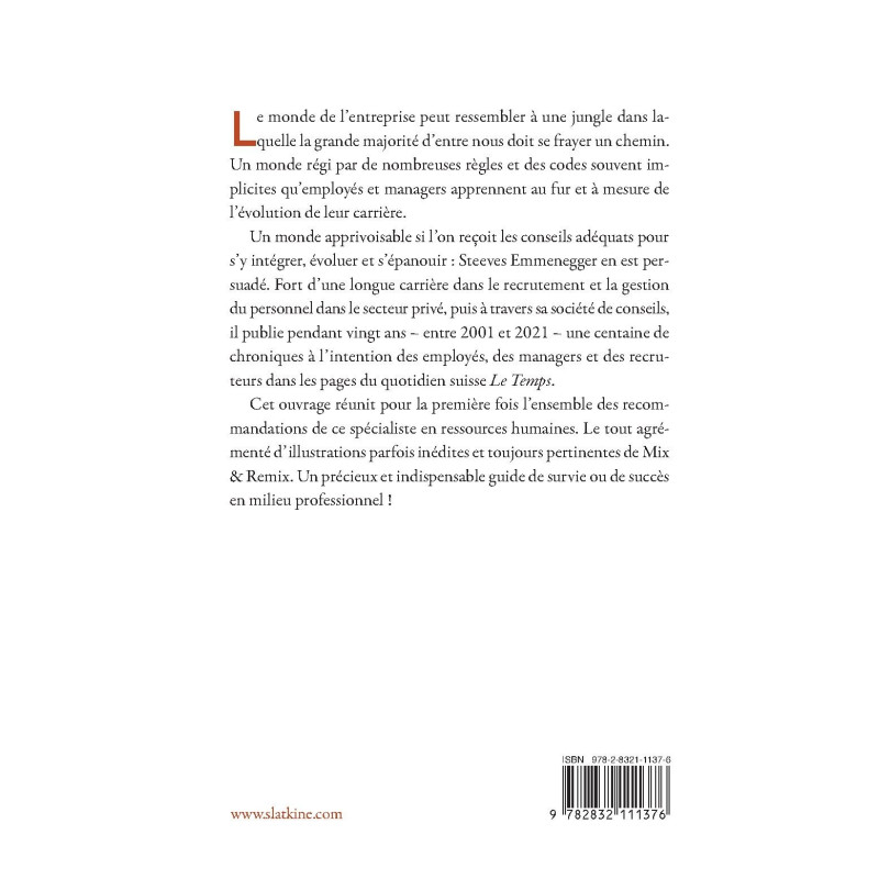 Cet ouvrage réunit pour la première fois l’ensemble des recommandations de ce spécialiste en ressources humaines. Le tout agrémenté d’illustrations parfois inédites et toujours pertinentes de Mix & Remix. Un précieux et indispensable guide de survie ou de succès en milieu professionnel !