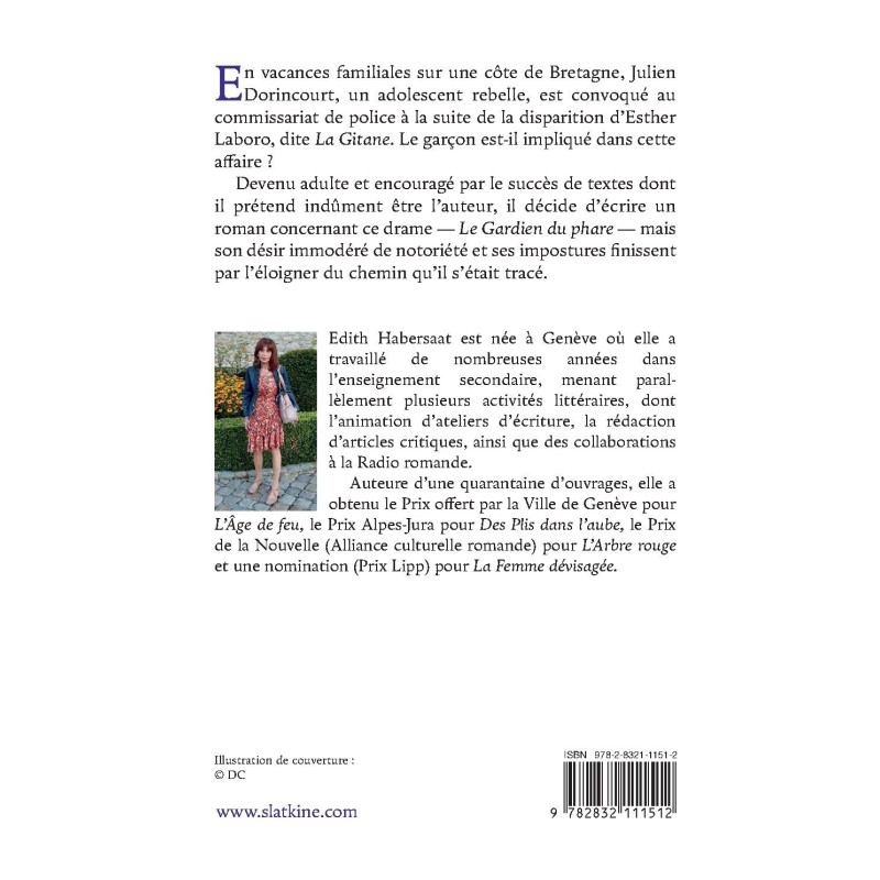 Edith Habersaat est née à Genève où elle a travaillé de nombreuses années dans l’enseignement secondaire, menant parallèlement plusieurs activités littéraires, dont l’animation d’ateliers d’écriture, la rédaction d’articles critiques, ainsi que des collaborations à la Radio romande. Auteur d’une quarantaine d’ouvrages, elle a obtenu le Prix offert par la Ville de Genève pour L’Âge de feu, le Prix Alpes-Jura pour Des Plis dans l’aube, le Prix de la Nouvelle (Alliance culturelle romande) pour L’Arbre rouge et une nomination (Prix Lipp) pour La Femme dévisagée.