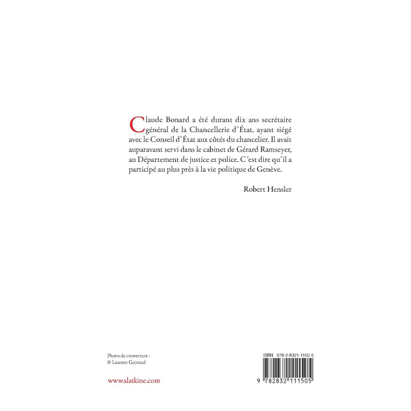 Claude Bonard a été durant dix ans secrétaire général de la Chancellerie d’État, ayant siégé avec le Conseil d’État aux côtés du chancelier. Il avait auparavant servi dans le cabinet de Gérard Ramseyer, au Département de justice et police. C’est dire qu’il a participé au plus près à la vie politique de Genève.