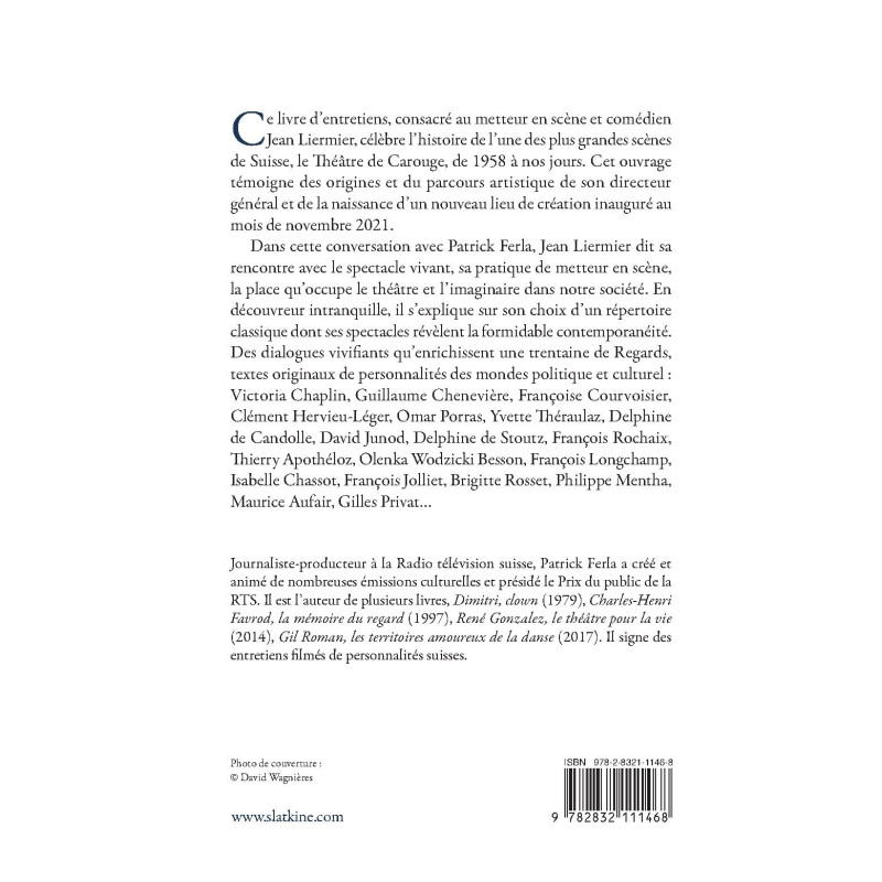Dans cette conversation avec Patrick Ferla, Jean Liermier dit sa rencontre avec le spectacle vivant, sa pratique de metteur en scène, la place qu’occupe le théâtre et l’imaginaire dans notre société. En découvreur intranquille, il s’explique sur son choix d’un répertoire classique dont ses spectacles révèlent la formidable contemporanéité. Des dialogues vivifiants qu’enrichissent une trentaine de Regards, textes originaux de personnalités des mondes politique et culturel : Victoria Chaplin, Guillaume Chenevière, Françoise Courvoisier, Clément Hervieu- Léger, Omar Porras, Yvette Théraulaz, Delphine de Candolle, David Junod, Delphine de Stoutz, François Rochaix, Thierry Apothéloz, Olenka Wodzicki Besson, François Longchamp, Isabelle Chassot, François Jolliet, Brigitte Rosset, Philippe Mentha, Maurice Aufair, Gilles Privat…