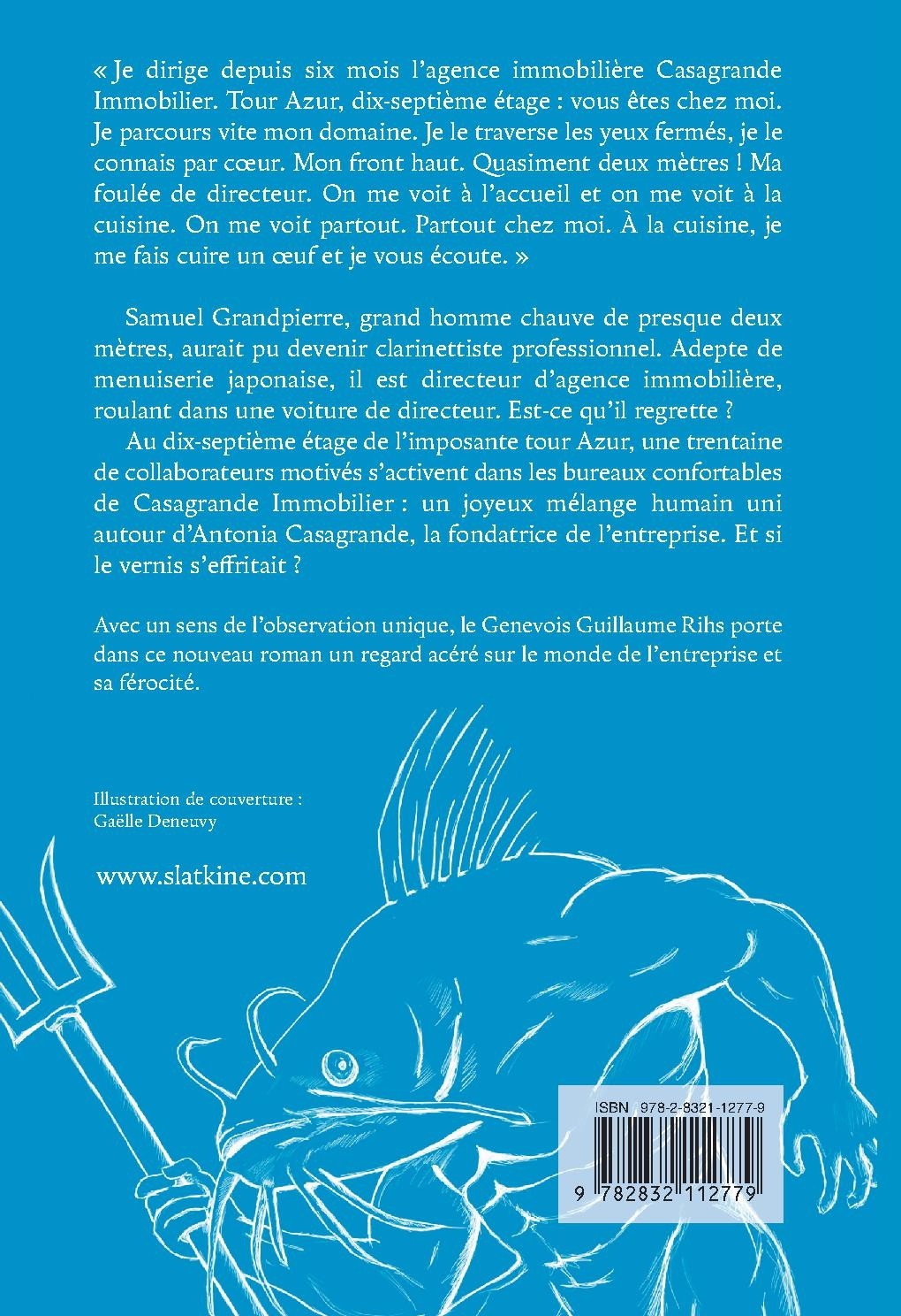 « Je dirige depuis six mois l’agence immobilière Casagrande Immobilier. Tour Azur, dix-septième étage : vous êtes chez moi. Je parcours vite mon domaine. Je le traverse les yeux fermés, je le connais par coeur. Mon front haut. Quasiment deux mètres ! Ma foulée de directeur. On me voit à l’accueil et on me voit à la cuisine. On me voit partout. Partout chez moi. À la cuisine, je me fais cuire un oeuf et je vous écoute. »
