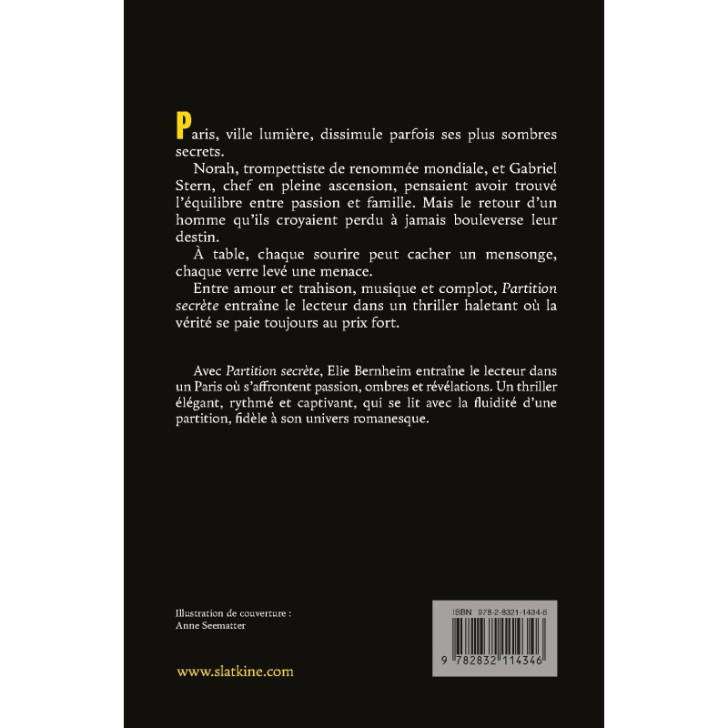 Avec Partition secrète, Elie Bernheim entraîne le lecteur dans un Paris où s’affrontent passion, ombres et révélations. Un thriller élégant, rythmé et captivant, qui se lit avec la fluidité d’une partition, fidèle à son univers romanesque.