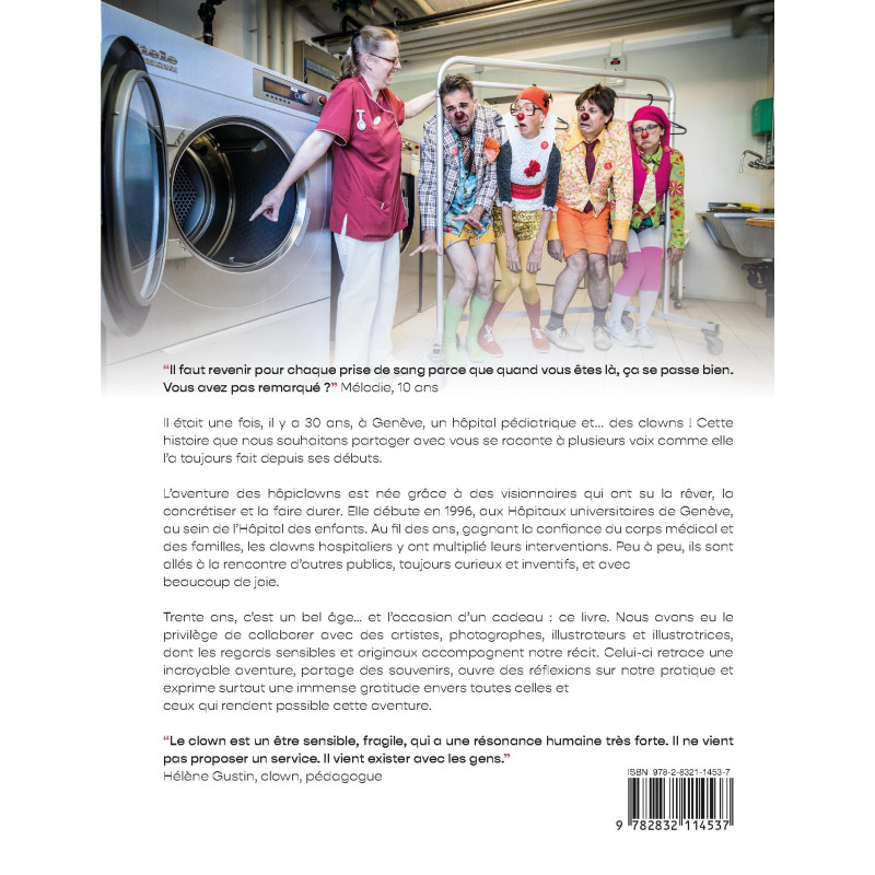 Il était une fois, il y a 30 ans, à Genève, un hôpital pédiatrique et... des clowns ! Cette histoire que nous souhaitons partager avec vous se raconte à plusieurs voix comme elle l’a toujours fait depuis ses débuts. L’aventure des hôpiclowns est née grâce à des visionnaires qui ont su la rêver, la concrétiser et la faire durer. Elle débute en 1996, aux Hôpitaux universitaires de Genève, au sein de l’Hôpital des enfants. Au fil des ans, gagnant la confiance du corps médical et des familles, les clowns hospitaliers y ont multiplié leurs interventions. Peu à peu, ils sont allés à la rencontre d’autres publics, toujours curieux et inventifs, et avec beaucoup de joie.