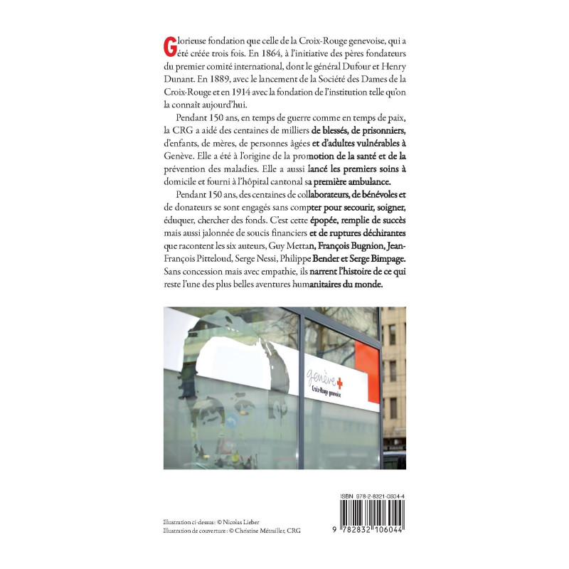 Pendant 150 ans, des centaines de collaborateurs, de bénévoles et de donateurs se sont engagés sans compter pour secourir, soigner, éduquer, chercher des fonds. C’est cette épopée, remplie de succès mais aussi jalonnée de soucis financiers et de ruptures déchirantes que racontent les six auteurs, Guy Mettan, François Bugnion, Jean-François Pitteloud, Serge Nessi, Philippe Bender et Serge Bimpage. Sans concession mais avec empathie, ils narrent l’histoire de ce qui reste l’une des plus belles aventures humanitaires du monde.