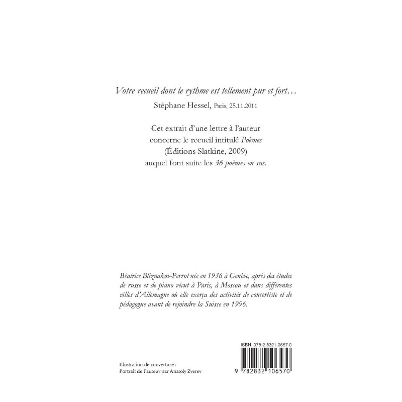 Cet extrait d’une lettre à l’auteur concerne le recueil intitulé Poèmes (Éditions Slatkine, 2009) auxquels font suite les 36 poèmes en sus.