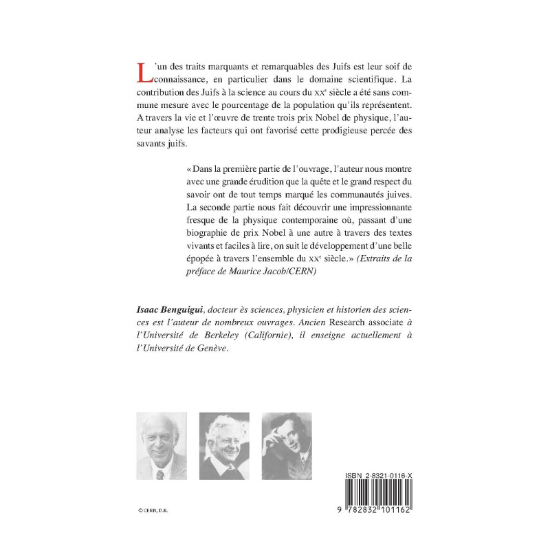 L'un des traits marquants et remarquables des Juifs est leur soif de connaissance, en particulier dans le domaine scientifique. La contribution des Juifs à la science au cours du XXe siècle a été sans commune mesure avec le pourcentage de la population qu'ils représentent. A travers la vie et l'œuvre de trente trois prix Nobel de physique, l'auteur analyse les facteurs qui ont favorisé cette prodigieuse percée des savants juifs.
