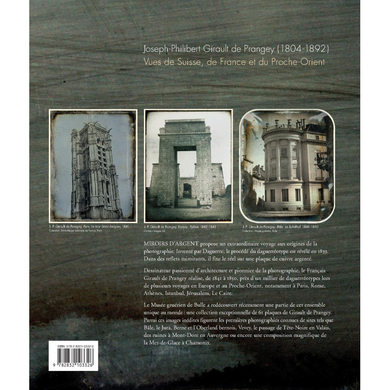 MIROIRS D'ARGENT propose un extraordinaire voyage aux origines de la photographie. Inventé par Daguerre, le procédé du daguerréotype est révélé en 1839. Dans des reflets miroitants, il fixe le réel sur une plaque de cuivre argenté. Dessinateur passionné d'architecture et pionnier de la photographie, le Français Girault de Prangey réalise, de 1841 à 1850, près d'un millier de daguerréotypes lors de plusieurs voyages en Europe et au Proche-Orient, notamment à Paris, Rome, Athènes, Istanbul, Jérusalem, Le Caire.Le Musée gruérien de Bulle a redécouvert récemment une partie de cet ensemble unique au monde : une collection exceptionnelle de 61 plaques de Girault de Prangey. Parmi ces images inédites figurent les premières photographies connues de sites tels que Bâle, le Jura, Berne et l'Oberland bernois, Vevey, le passage de Tête-Noire en Valais, des ruines à Mont Dore en Auvergne ou encore une composition magnifique de la Mer de Glace à Chamonix.