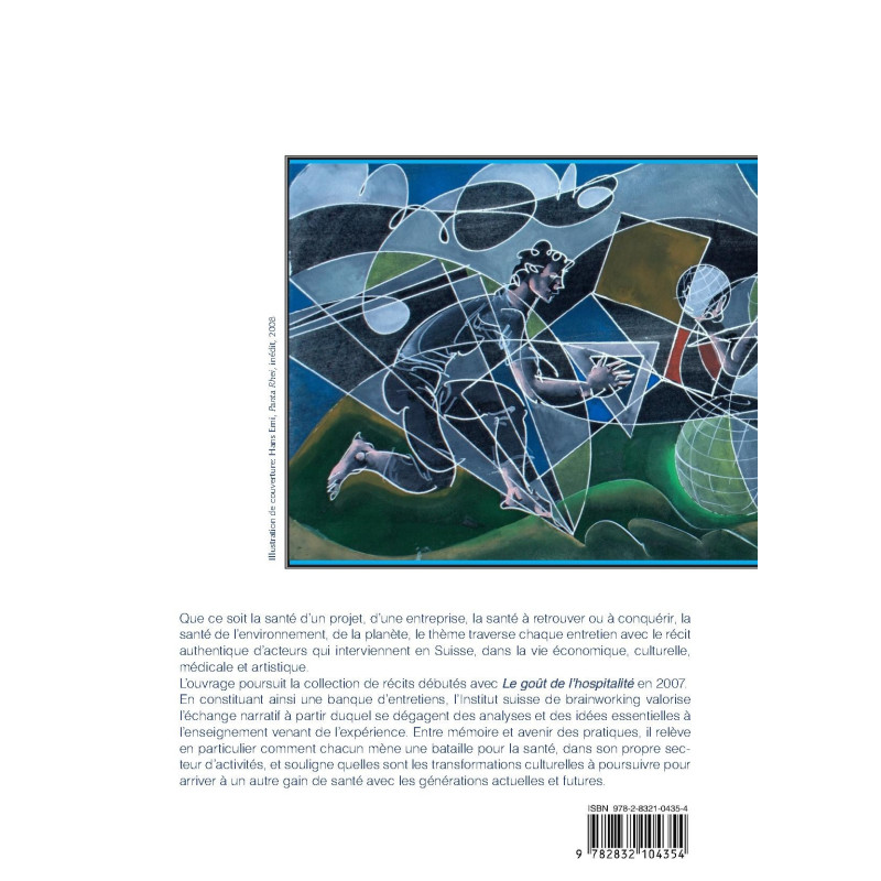 Que ce soit la santé d`un projet, d`une entreprise, la santé à retrouver ou à conquérir, la santé de l`environnement, de la planète, le thème traverse chaque entretien avec le récit authentique d`acteurs qui interviennent en Suisse, dans la vie économique, culturelle, médicale et artistique. Par différents biais, ce livre relève combien la notion de santé n`est pas étrangère au discours d`une époque qui la façonne, tant en fonction de nouvelles utopies technologiques, telle l`idée de santé parfaite, qu`en fonction d`une saga de la santé à travers les âges, les cultures et les intérêts économiques. Le lecteur, tout comme les protagonistes de ces entretiens, n`est sans doute pas indifférent aux mots d`ordre qui s`érigent comme des normes morales, esthétiques ou sociales à propos de la santé. Peut-être ce livre contribue-t-il à les mettre en lumière ? Entretiens avec Hans Erni, Pierre Lalive, Aldo Calanca Pierre-François Unger, Jean-Claude Biver, Mary-Anna Barbey Paola Ghillani, Charles Gobelet, Simon Darioli Olivier Guéniat, Luc Recordon, Jean-Philippe Assal, Yves Flückiger Jean Laville, Philippe Auer, Nelly Wenger, Anne-Sophie Spérisen Claude Torracinta, Blaise Goetschin, Isabelle Chevalley, Daniel Rossellat Roger Pfund, Charles Kleiber, François Ansermet. L`Institut suisse de brainworking, auteur de cette proposition, poursuit la collection et l`édition de récits débutés avec Le goût de l`hospitalité en 2007. En constituant une banque d`entretien l`Institut valorise l`échange narratif pour que chacun tire des enseignements de sa propre expérience et en relève l`essentiel.