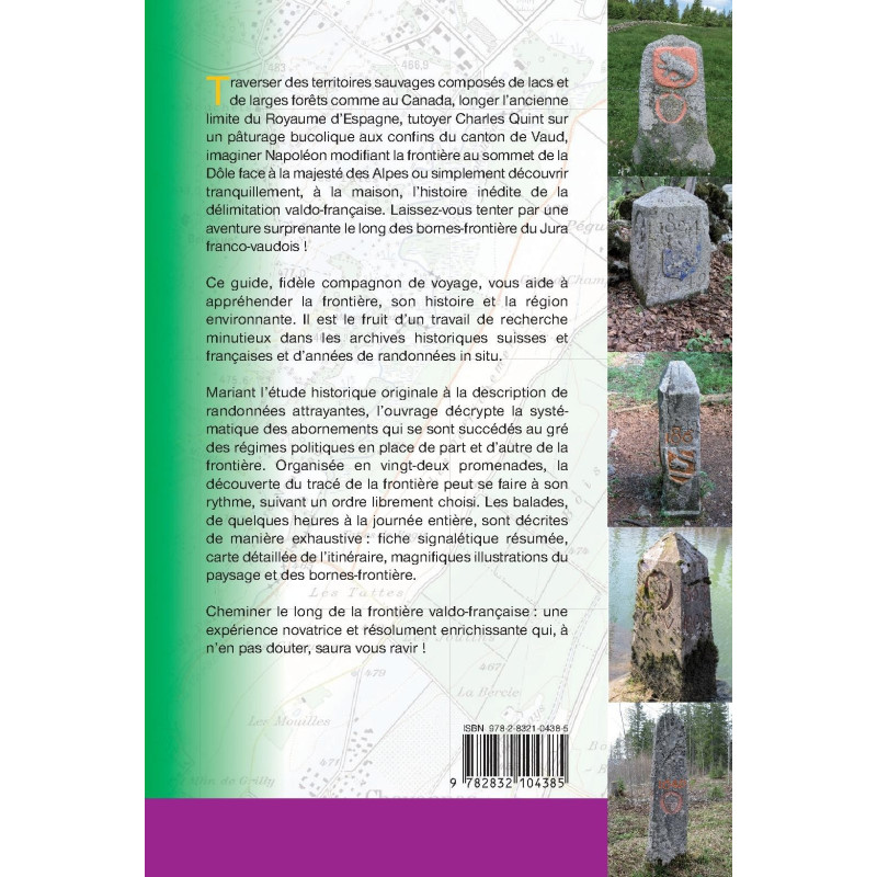 Traverser des territoires sauvages composés de lacs et de larges forêts comme au Canada, longer l`ancienne limite du Royaume d`Espagne, tutoyer Charles Quint sur un pâturage bucolique aux confins du canton de Vaud, imaginer Napoléon modifiant la frontière au sommet de la Dôle face à la majesté des Alpes ou simplement découvrir tranquillement, à la maison, l`histoire inédite de la délimitation valdo-française. Laissez-vous emporter dans une aventure surprenante le long des bornes-frontière du Jura franco-vaudois ! Ce guide, fidèle compagnon de voyage, vous aide à appréhender la frontière, son histoire et la région environnante. Il est le fruit d`un travail de recherche minutieux dans les archives historiques suisses et françaises et d`années de randonnées " in situ ". Mariant l`étude historique originale à la description de randonnées attrayantes, l`ouvrage décrypte la systé - matique des abornements qui se sont succédés au gré des régimes politiques en place de part et d`autre de la frontière. Organisée en vingt-deux promenades, la découverte du tracé de la frontière peut se faire à son rythme, suivant un ordre librement choisi. Les balades, de quelques heures à la journée entière, sont décrites de manière exhaustive : fiche signalétique résumée, carte détaillée de l`itinéraire, magnifiques illustrations du paysage et des bornes-frontière. Cheminer le long de la frontière valdo-française : une expérience novatrice et résolument enrichissante qui, à n`en pas douter, saura vous ravir !