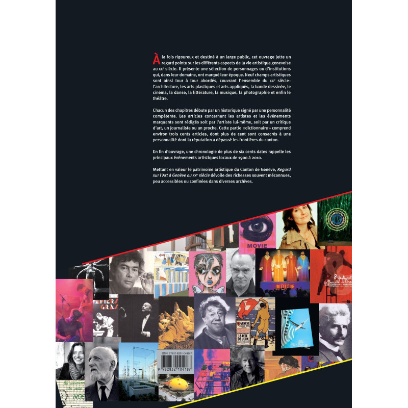 À la fois rigoureux et destiné à un large public, cet ouvrage jette un regard pointu sur les différents aspects de la vie artistique genevoise au XXe siècle. Il présente une sélection de personnages ou d`institutions qui, dans leur domaine, ont marqué leur époque. Neuf champs artistiques sont ainsi tour à tour abordés, couvrant l`ensemble du XXe siècle : l`architecture, les arts plastiques et arts appliqués, la bande dessinée, le cinéma, la danse, la littérature, la musique, la photographie et enfin le théâtre. Chacun de ces chapitres débute par un historique de cinq à dix pages signé par une personnalité compétente. Les articles concernant les artistes et les événements marquants sont rédigés soit par l`artiste lui-même, soit par un critique d`art, un journaliste ou un proche. Cette partie "dictionnaire" comprend environ trois cents articles, dont plus de cent sont consacrés à une personnalité dont la réputation a dépassé les frontières du canton. En fin d`ouvrage, une chronologie de plus de six cents dates rappelle les principaux événements artistiques locaux de 1900 à 2000. Mettant en valeur le patrimoine artistique du canton de Genève, L`Art à Genève au XXe siècle dévoile des richesses souvent méconnues, peu accessibles ou confinées dans diverses archives.