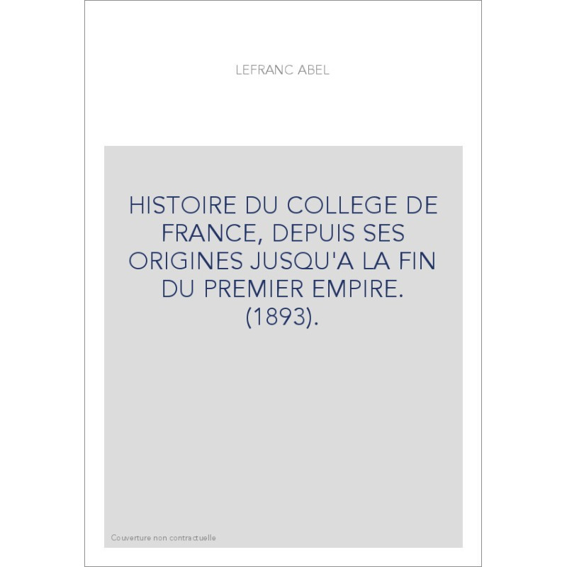 HISTOIRE DU COLLEGE DE FRANCE, DEPUIS SES ORIGINES JUSQU'A LA FIN DU PREMIER EMPIRE. (1893).