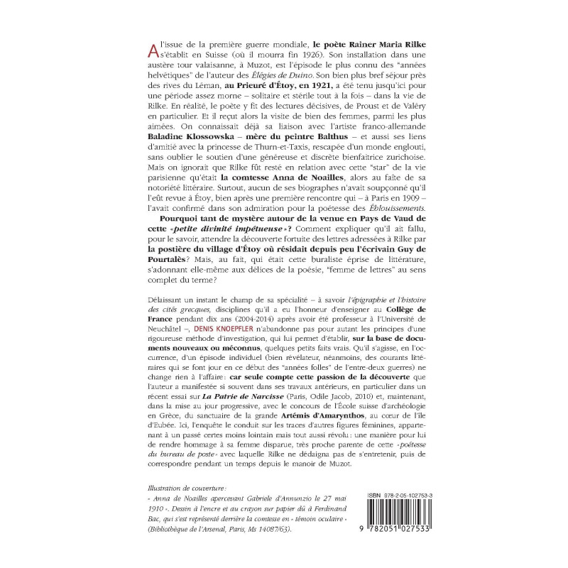 Rainer Maria Rilke’s brief stay at the Étoy priory in 1921 was not as dull or solitary as was once believed. The poet was in fact busy reading some key authors (e.g. Valéry) and hosting a number of ladies, among which Countess Anna de Noailles – a veritable star of Parisian social life and a poet in her own right.