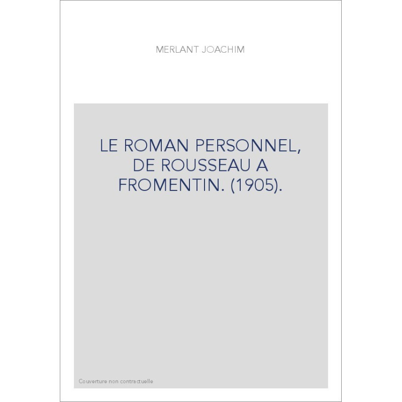 LE ROMAN PERSONNEL, DE ROUSSEAU A FROMENTIN. (1905).