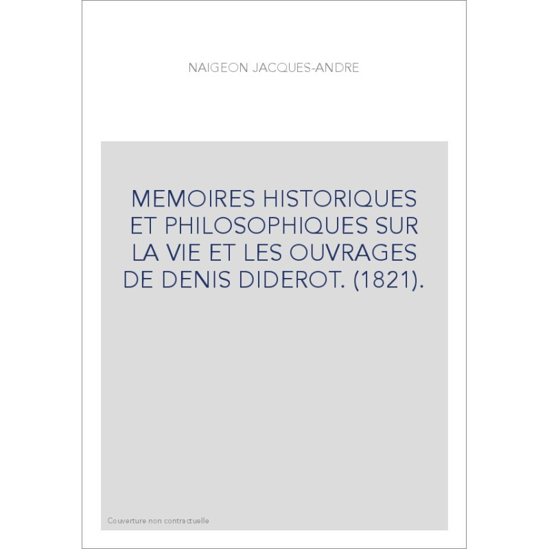 MEMOIRES HISTORIQUES ET PHILOSOPHIQUES SUR LA VIE ET LES OUVRAGES DE DENIS DIDEROT. (1821).